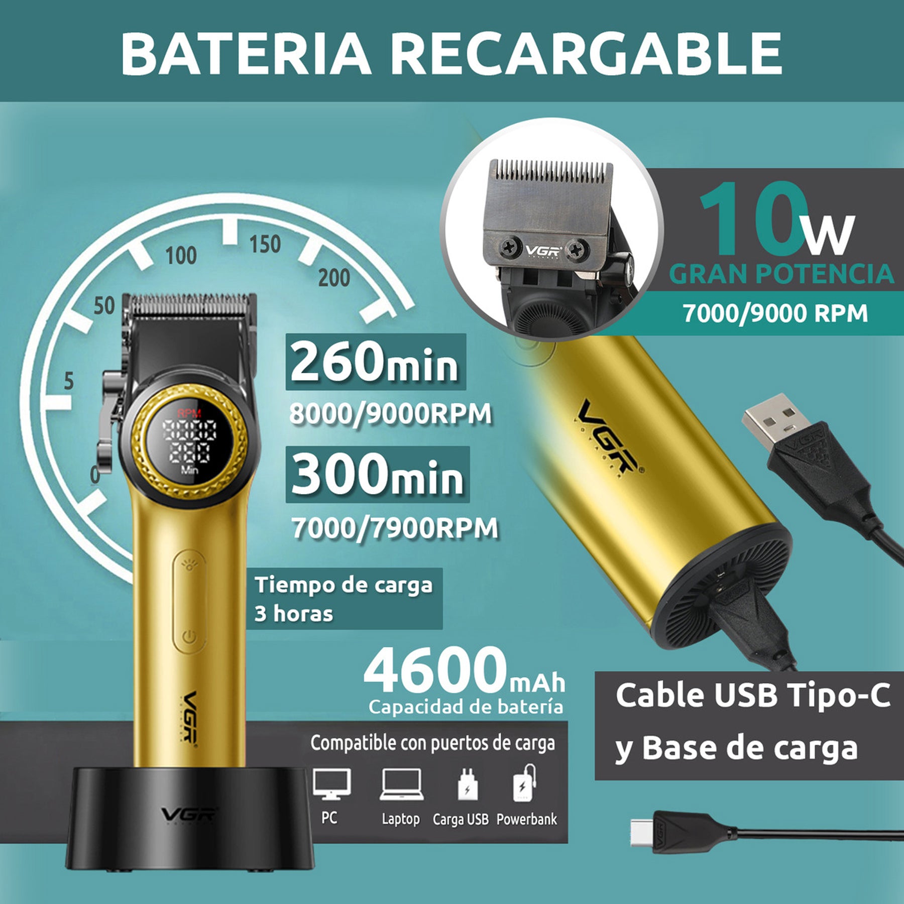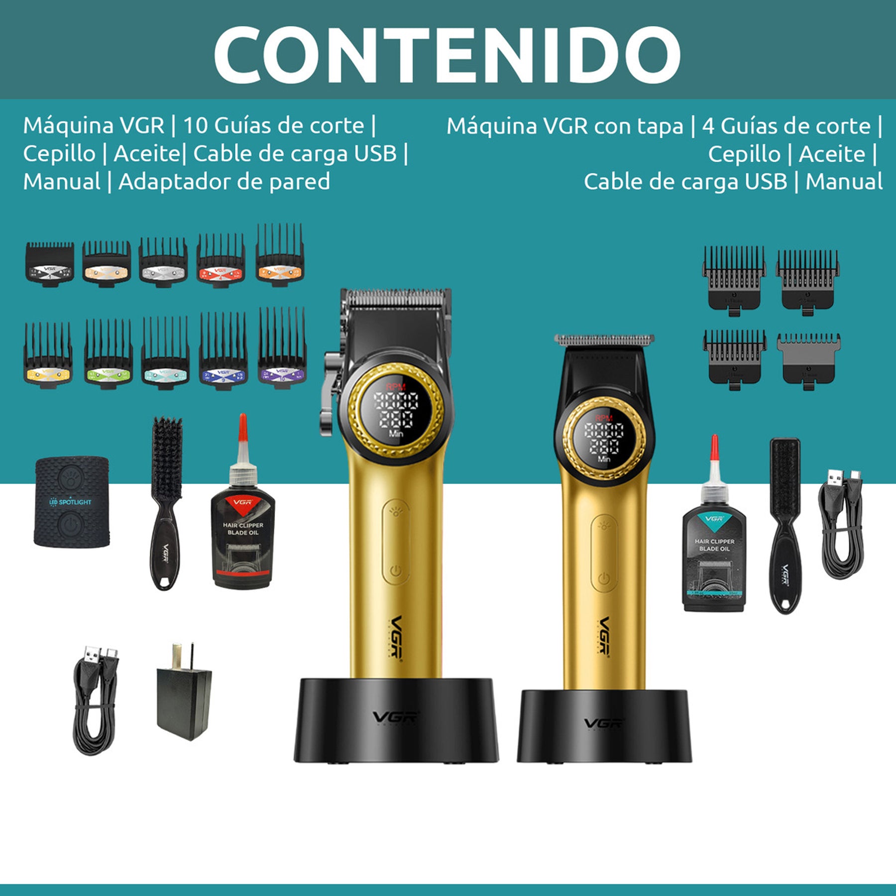 Este combo VGR incluye una máquina de corte profesional y una patillera de precisión, ideales para barberos exigentes o quienes desean resultados de salón desde casa. Diseñado para lograr cortes definidos y acabados perfectos, te permite dominar desde los degradados hasta los detalles más finos.